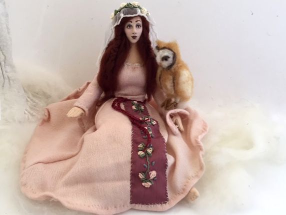 Guinevere cloth art doll and needle felted owl. ITEM SOLD